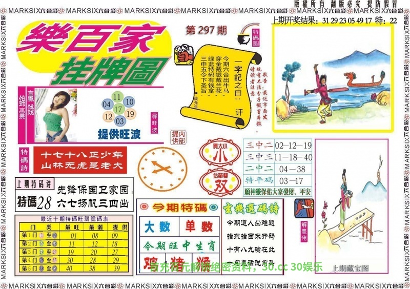 302期:密门仙机/心水特码信/黄大仙天书/波色生肖诗/生肖歇后语