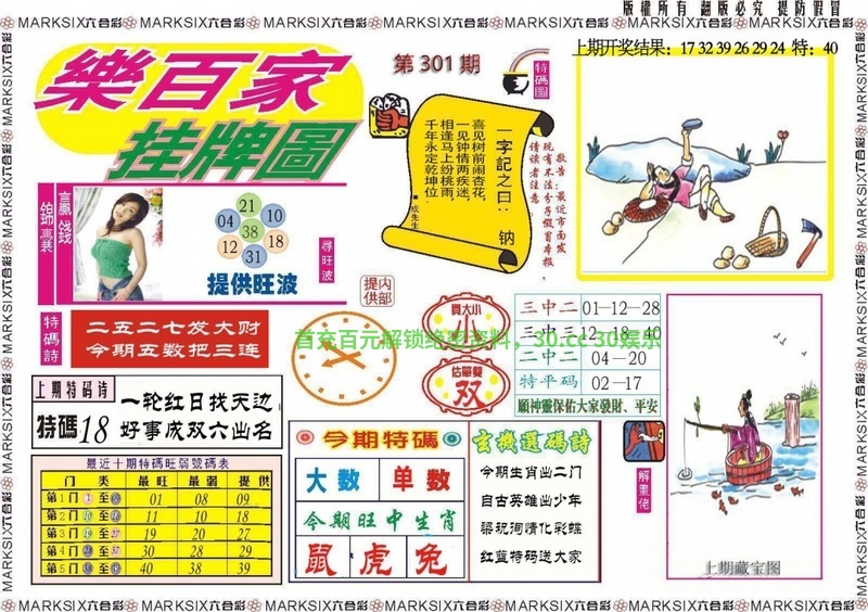 302期:黄大仙心水/简单好下注/台湾玄机诗/港台澳七肖/必中人物